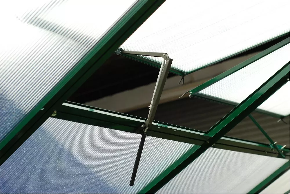 - Automatický otvírač pro střešní okno - píst s pákou, kterým nahradíte manuální otvírání. Píst funguje na bázi tepelné roztažnosti vosku a se zvyšující se teplotou ve skleníku posunuje s pákou otvírače a otvírá okno.