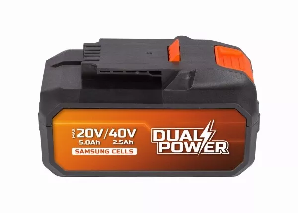 - Koncept je jednoduchý, ale silný. 20V akumulátor se hodí pro 20V DUAL stroje, akumulátor 40V je určen pro 40V DUAL stroje. NYNÍ SE ALE DOSTÁVÁME KE SKUTEČNÉ INOVATIVNÍ ZMĚNĚ: Můžete totiž také připojit 40V baterii na 20V DUAL stroje.