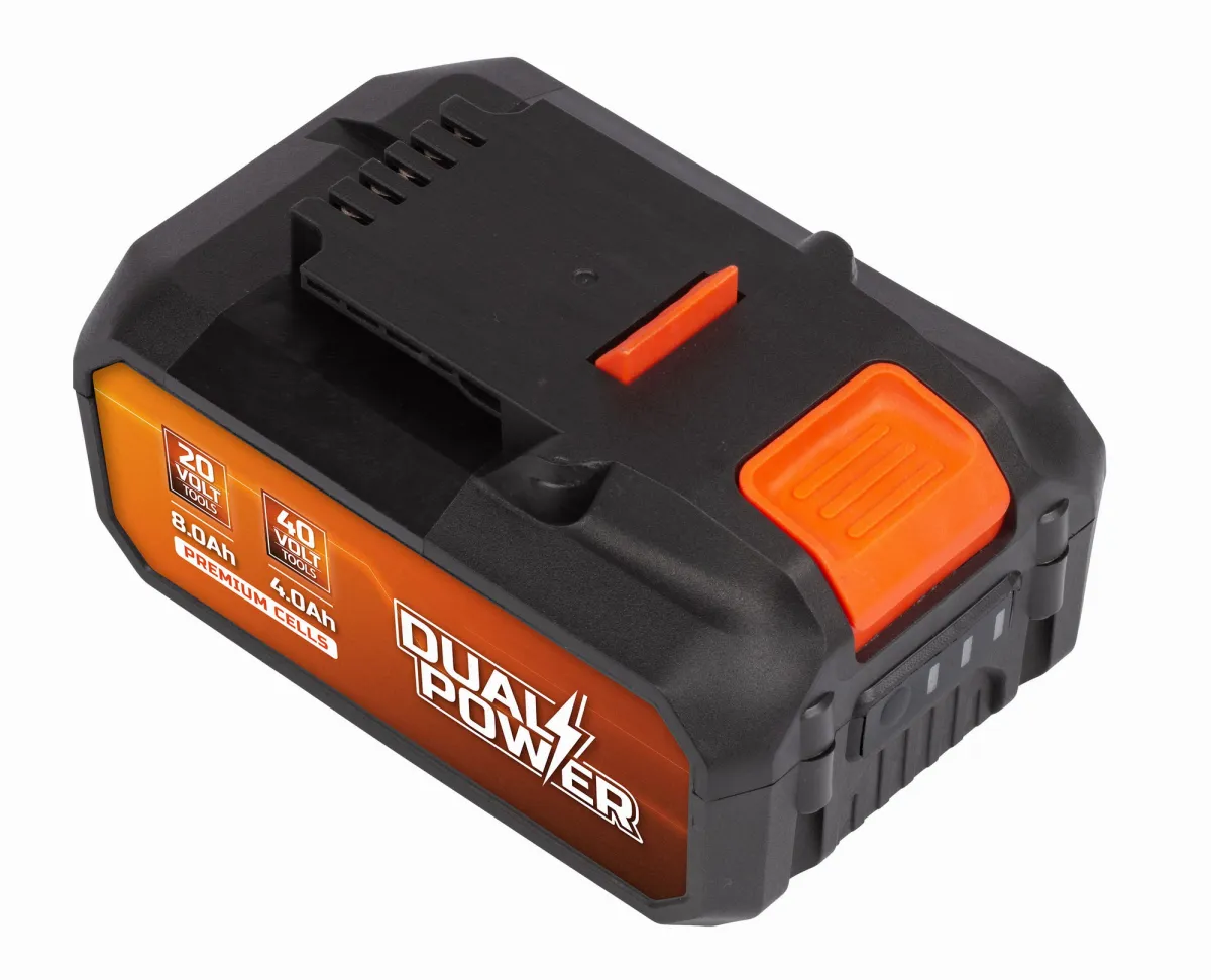 - Tato 40V baterie POWDP9040 od PowerPlus je kompatibilní se všemi 20V a 40V stroji z řady DUAL POWER, a to jak ručním, tak i zahradním nářadím.