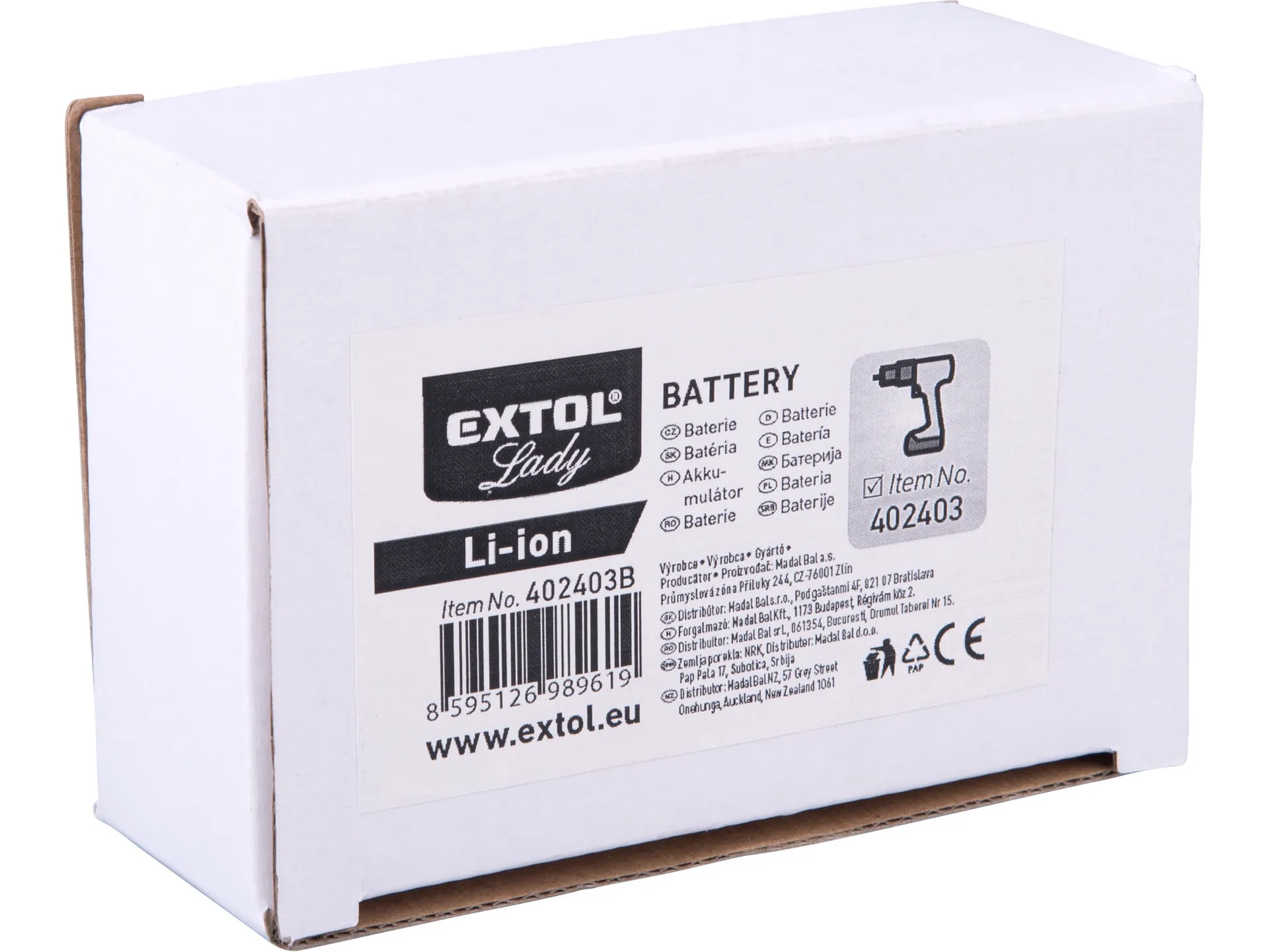 Baterie akumulátorová, 12v li-ion, 2000mah EXTOL LADY 402403B