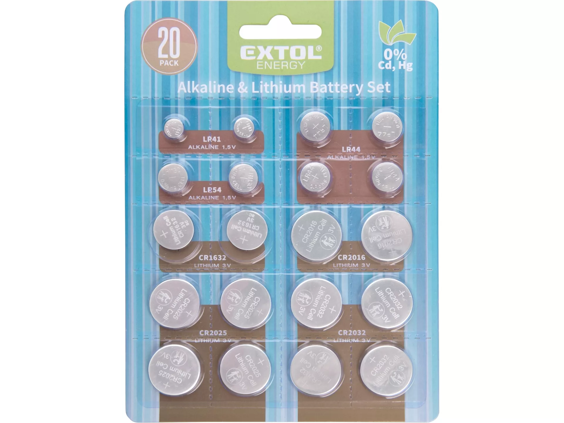 Baterie alkalické a lithiové, sada 20ks EXTOL ENERGY 42057
