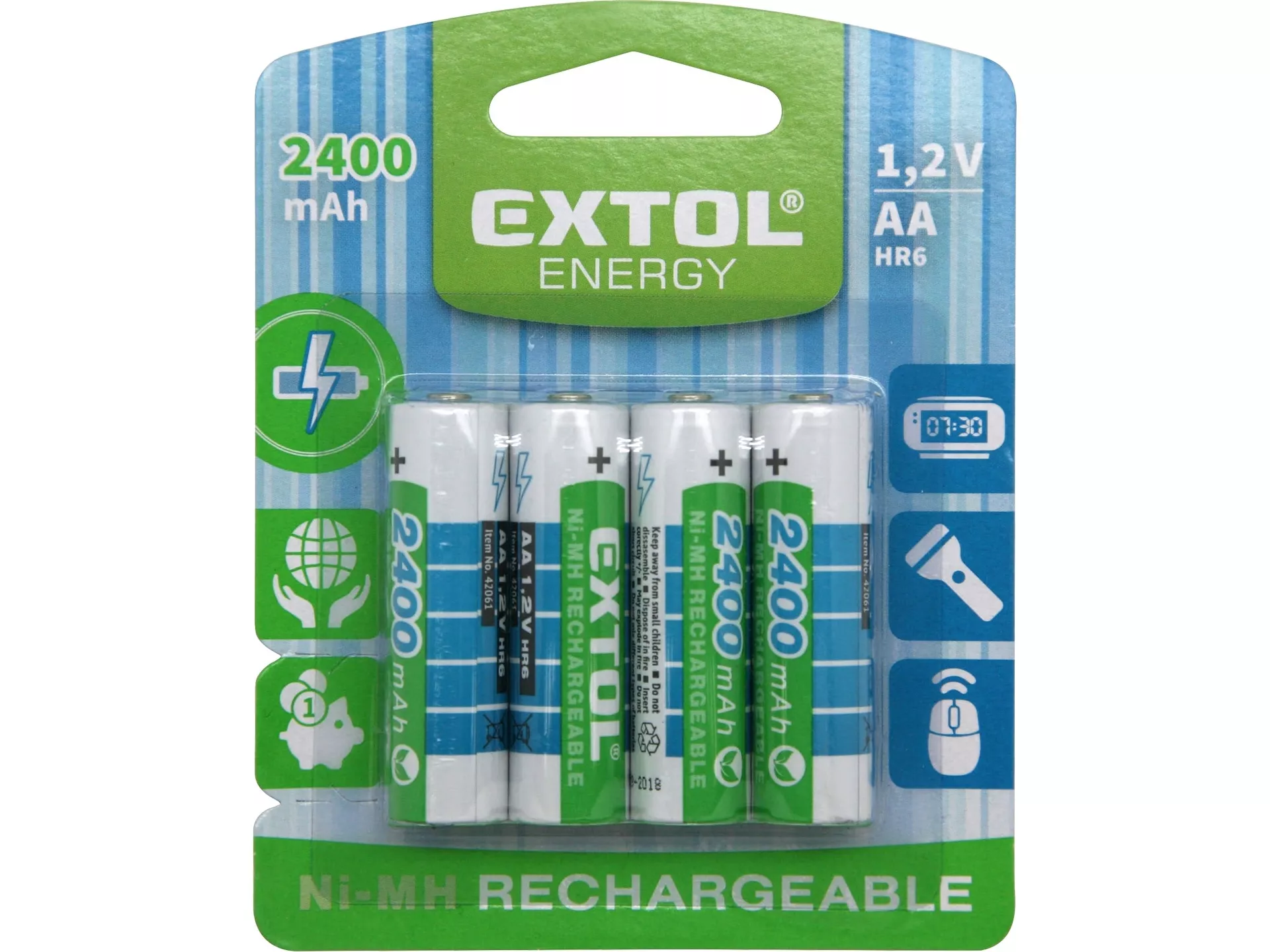 Baterie nabíjecí, 4ks, aa (hr6), 1,2v, 2400mah, nimh EXTOL ENERGY 42061