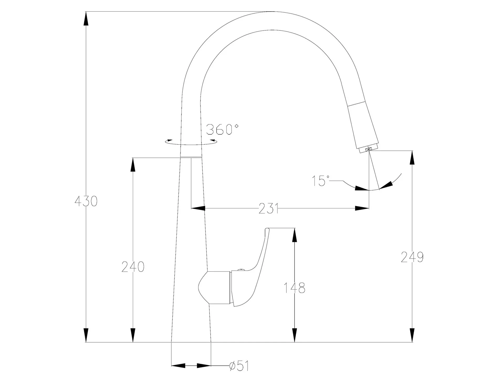 Baterie dřezová stojánková, horní ramínko, 35mm, chrom BALLETTO 81016
