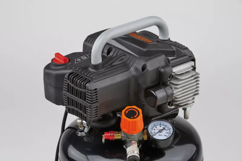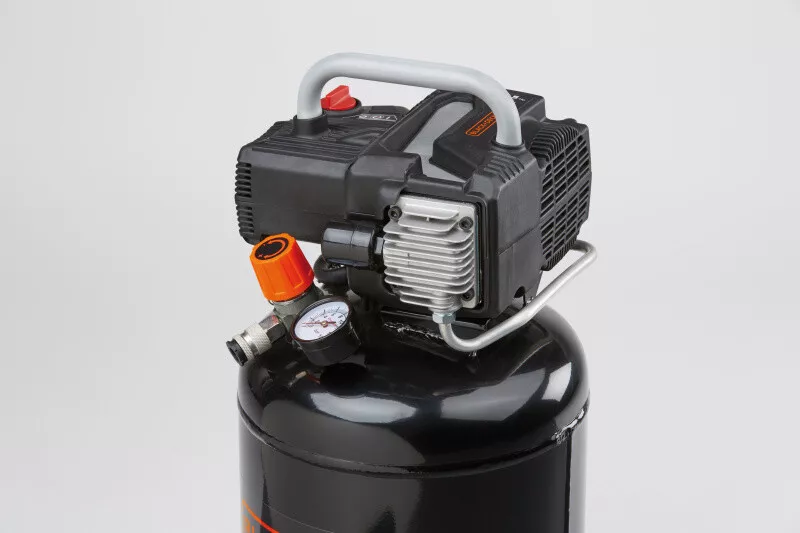 - Bezolejový vertikální kompresor s maximálním tlakem až 10 barů. Lehký kompresor s 24 litrovým vzdušníkem.Tento model má vestavěnou rukojeť.