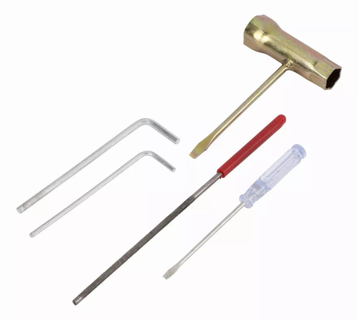 - Dodává se s chráničem lišty, sadou nářadí a míchací lahví (palivo/olej).