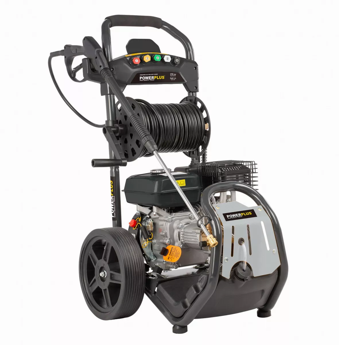 - Díky výkonnému benzínovému motoru o objemu 210 ccm zvládne tlakový čistič POWXG9100 POWERPLUS i ty nejnáročnější práce.