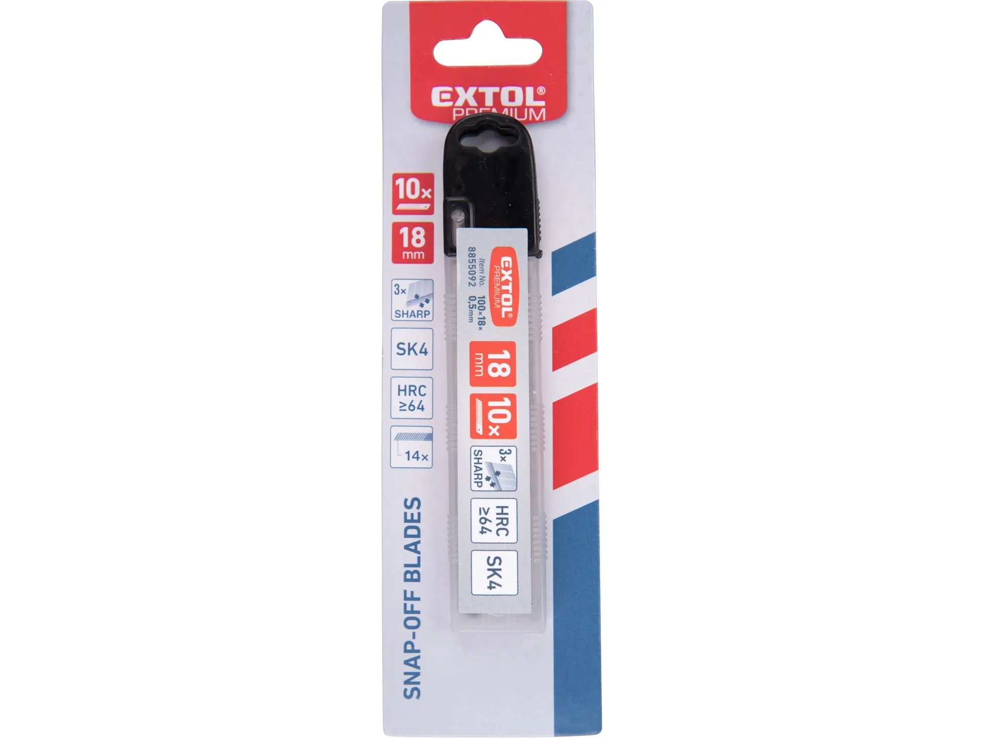 Břity ulamovací do nože 10ks, 18mm(tl.0,5mm/14s), sk4 EXTOL PREMIUM 8855092