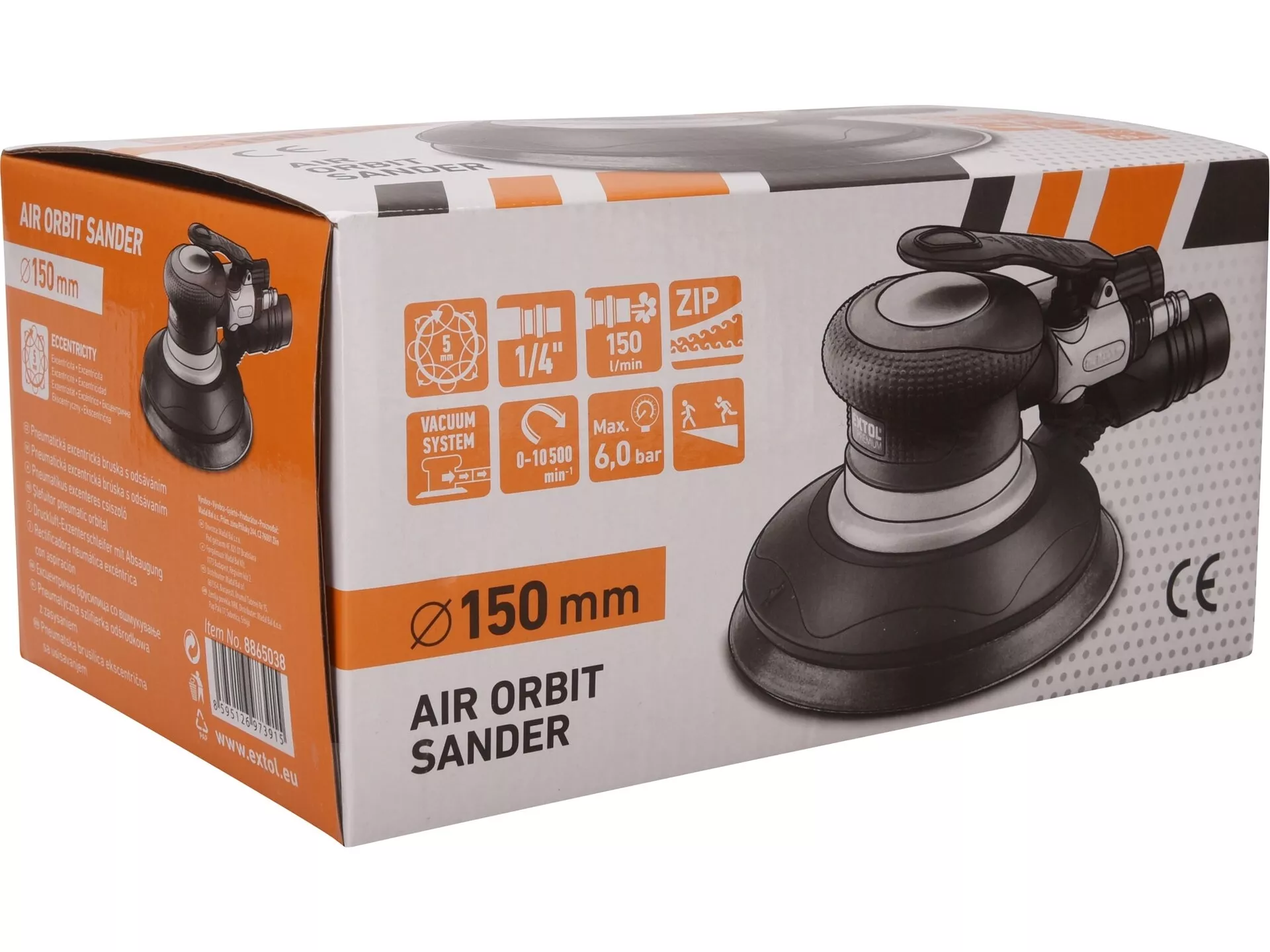 - Pneumatická excentrická bruska 150 mmsada excentrické brusky a příslušenstvískvělá pro broušení dřeva, kovů, plastů, nátěrových a spárovacích hmot a pro leštění povrchůotáčky: 10 000 ot./min.maximální tlak 6,3 barspotřeba vzduchu 93,4 l/min.průměr kotouče 150 mmbeznástrojová výměna brusného papíru díky suchému zipupříslušenství: 5 x brusný papír 150 mm, brusná podložka se suchým zipem, těsnící páska, ochranná manžeta, maznička, olej, konektor pro rychlospojku