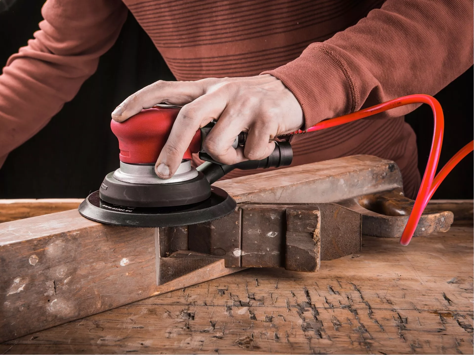 - Pneumatická excentrická bruska je určena pro broušení dřeva, kovů, plastů, spárovací a emailové hmoty a také k leštění. Součástí brusky je výstup pro připojení externího odsávání prachu a regulátor otáček. Nosič brusného kotouče je vybaven suchým zipem, který umožňuje rychlou beznástrojovou výměnu brusného papíru.