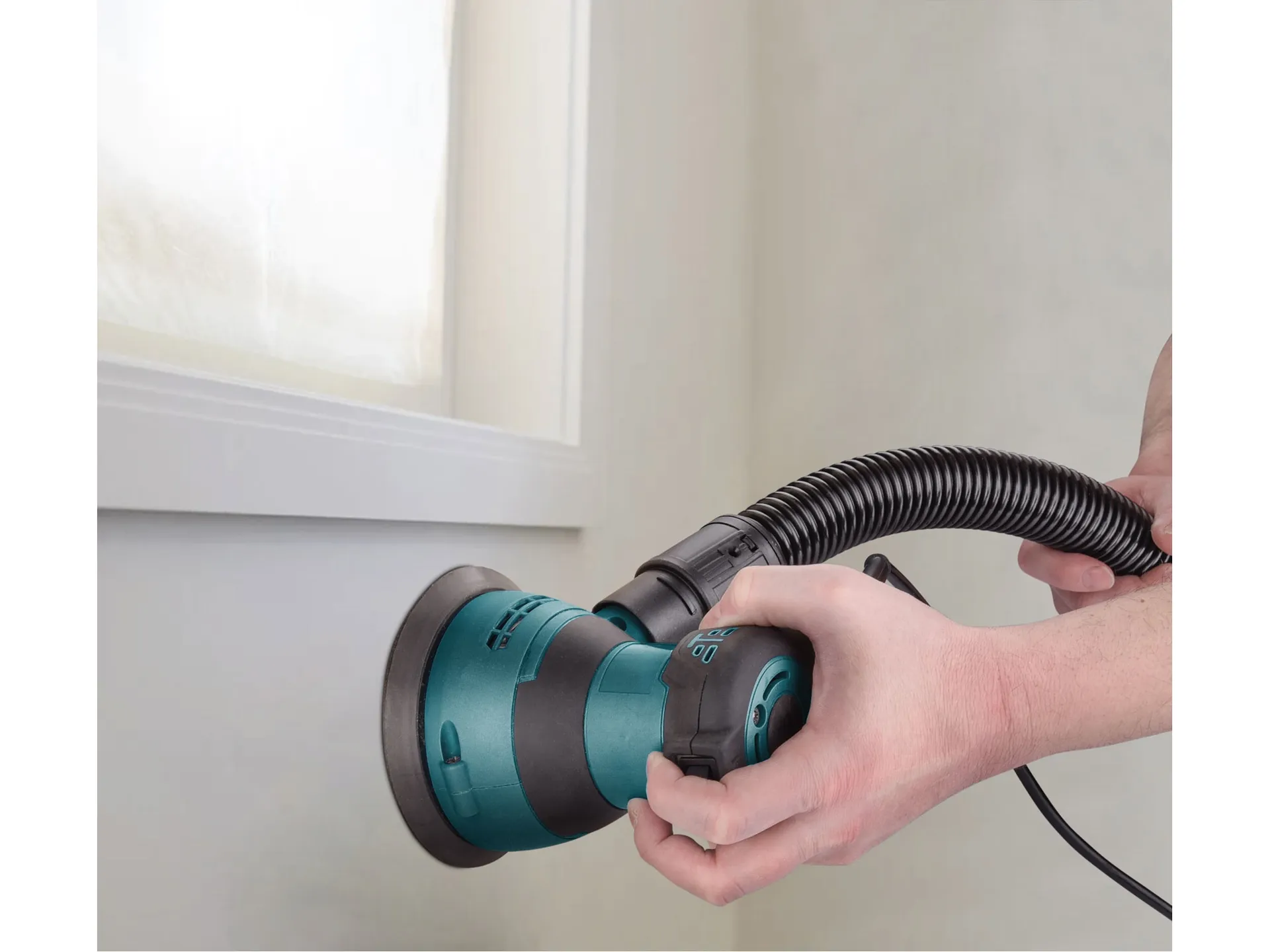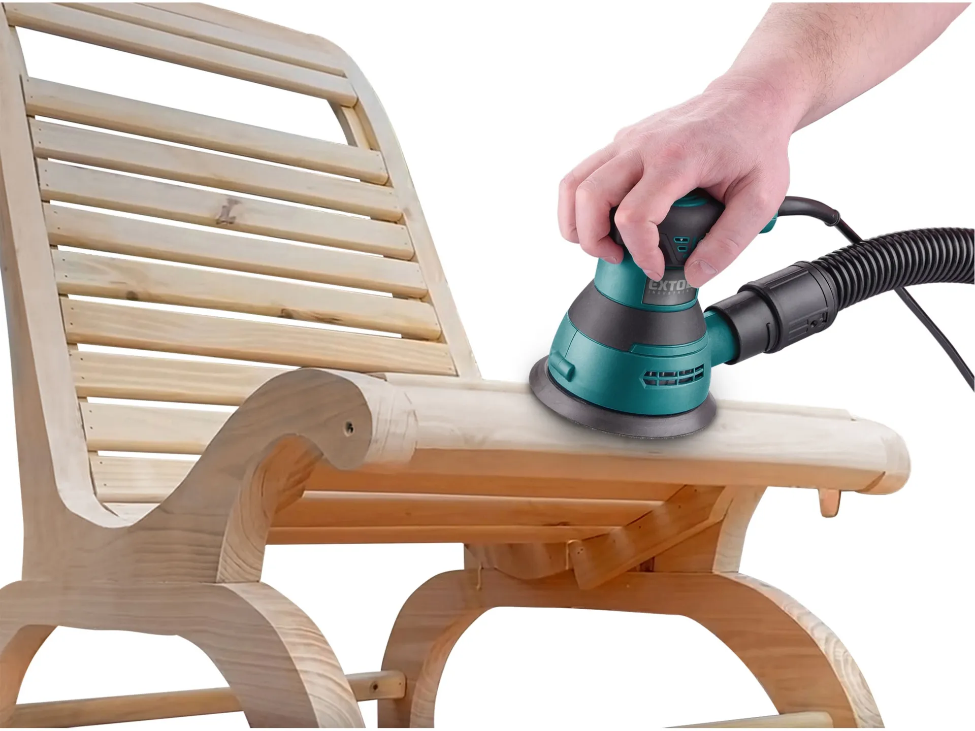 - Menší excentrická bruska pro práci jednou rukou je vhodná k suchému broušení dřeva (např. obložení, nábytku, dveří, oken), kovu, umělé hmoty, tmelu, dále k obrušování nátěrů, koroze atd. a k leštění zasucha. Díky malým rozměrům se používá také pro práci v obtížněji přístupných místech. Při práci jednou rukou máte větší cit v ruce a můžete jemněji manipulovat strojem na povrchu materiálu. Orbitální (excentrické) pohyby kotouče zvyšují efektivitu broušení a snižují mechanické stopy na materiálu, které mohou vznikat při broušení ve vysokých rychlostech. Regulace otáček stroje je vhodná při opracovávání různých typů materiálů. Bruska má zabudované odsávání jemného prachu vznikajícího při broušení a ukládá ho do sběrné nádoby, čím výrazně zmenšuje znečištění pracovní plochy a vzduchu při práci. Pokud máte k dispozici průmyslový vysavač, můžete ho také připojit na brusku a tím zvýšit kvalitu odsávání jemného prachu. Brusné papíry jsou upevněny pomocí suchého zipu. Bruska není vhodná pro broušení sádrokartonu.