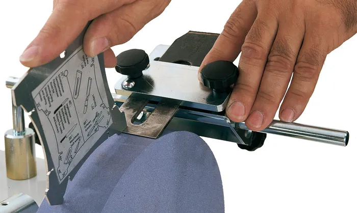 - Úhlová měrka pro nastavení správného brusného úhlu