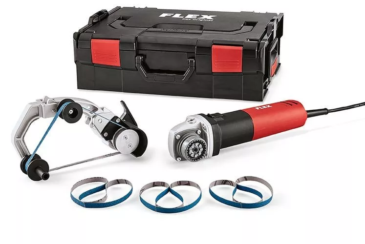 Pásová bruska na trubky a pásový pilník TRINOXFLEX v sadě FLEX BRE 8-4 INOX Set 230/CEE