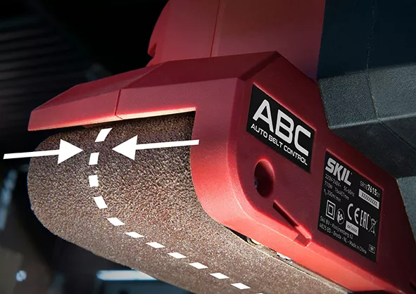 - Ruční zarovnávání pásu během používání již není třeba, a to díky automatické regulaci stopy brusného pásu („ABC“), která zajišťuje perfektní zarovnání brusného pásu s nářadím.