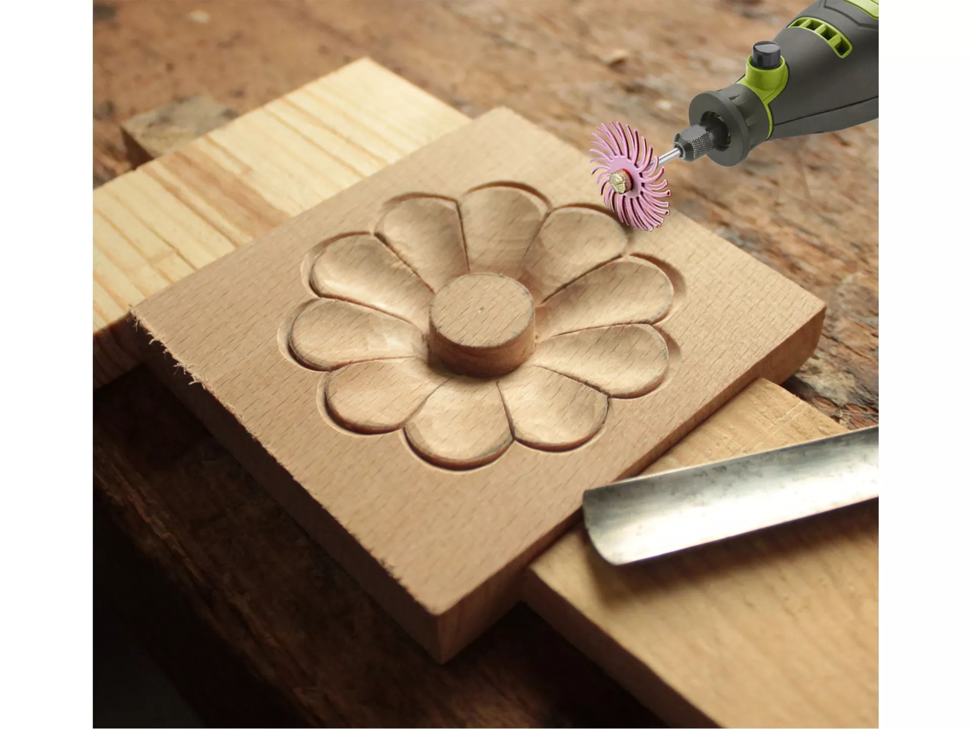 - Malá bruska s řadou nástavců, určená k jemným gravírovacím pracím, preciznímu opracování dřeva, kovu či plastů a práci ve stísněných prostorech. Má ergonomický tvar a je pokrytá gumou v místech úchopu, což snižuje únavu při práci. Stroj umožňuje výměnu a montáž upínacích kleštin pro uchycení nástrojů s průměrem stopky 3 nebo 3,2 mm. Součástí balení je sada 40 kusů brusných a řezacích nástrojů a nástavců. Pro velmi jemnou a drobnou práci lze k brusce dokoupit ohebný nástavec.