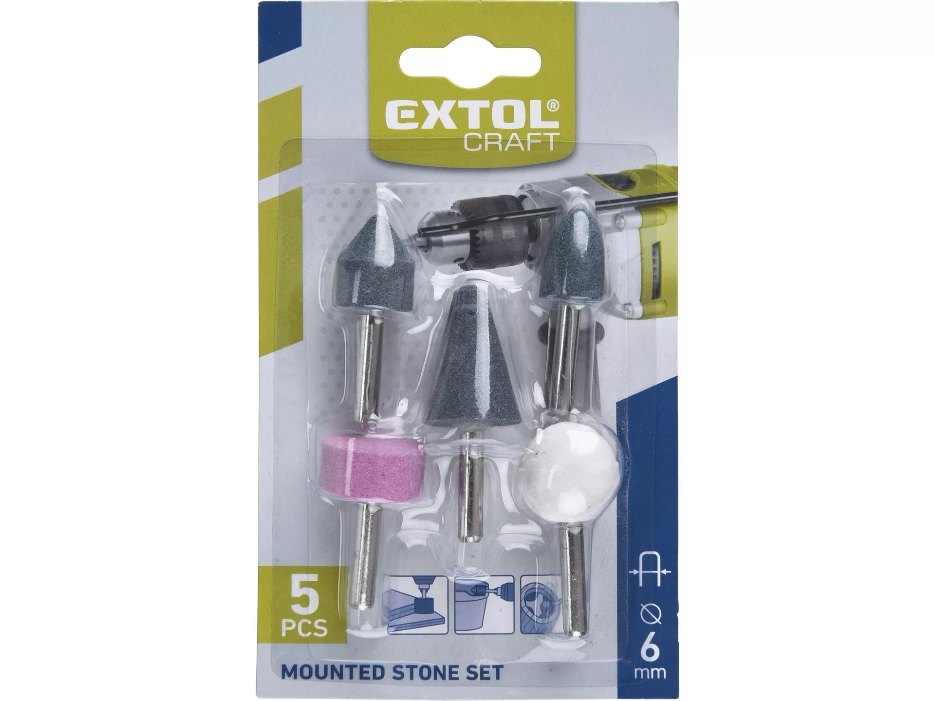 Brusky rotační, sada 5ks, stopka 6mm EXTOL CRAFT 1820