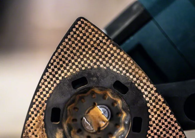 - S brusným talířem EXPERT Sanding Plate se však můžete dostat do rohů a brousit obtížné materiály pomocí oscilačního multifunkčního nářadí.