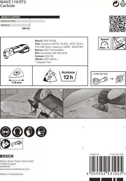 Brusná deska karbidová pro oscilační nářadí EXPERT MAVZ 116 RT2, 116 mm BOSCH 2608900052