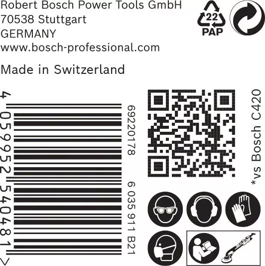 - Text s tvrzením o výkonnosti: Až 4× snížená prašnost než s brusným papírem Bosch C420