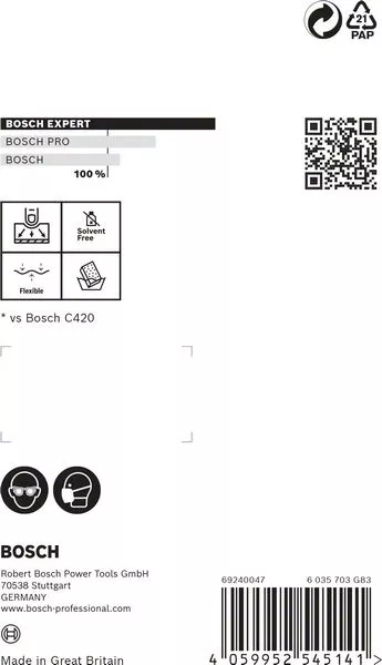 - Text s tvrzením o výkonnosti: Vydrží až 5× déle než brusný papír Bosch C420