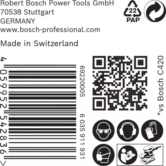 - Text s tvrzením o výkonnosti: Až 2× rychlejší než brusný papír Bosch C420