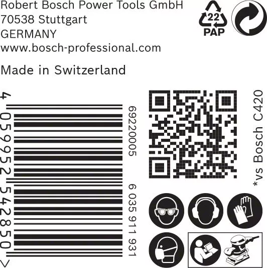 - Text s tvrzením o výkonnosti: Až 2× rychlejší než brusný papír Bosch C420