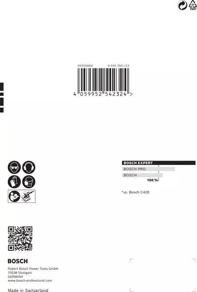 - Text s tvrzením o výkonnosti: Až 2× rychlejší než brusný papír Bosch C420