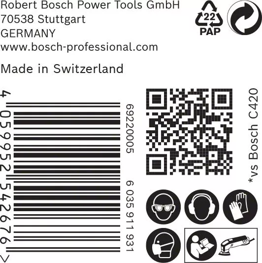 - Text s tvrzením o výkonnosti: Až 2× rychlejší než brusný papír Bosch C420