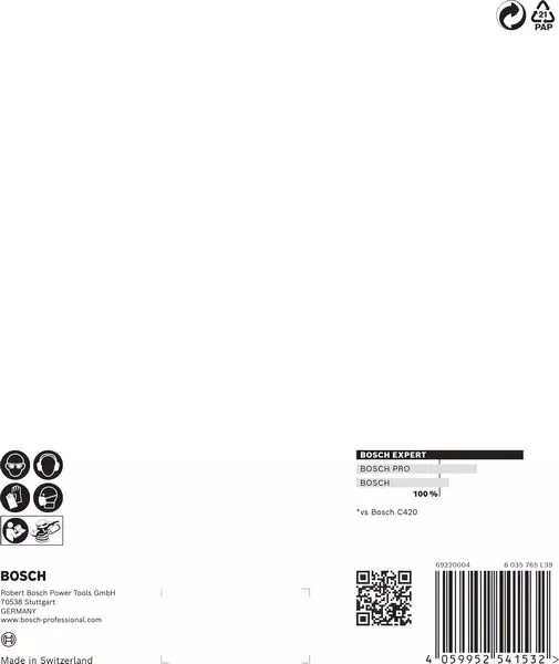 - Text s tvrzením o výkonnosti: Až 2× rychlejší než brusný papír Bosch C420