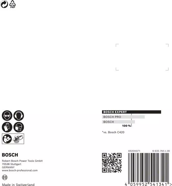 - Text s tvrzením o výkonnosti: Až 2× rychlejší než brusný papír Bosch C420