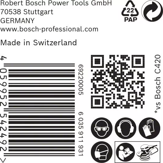 - Text s tvrzením o výkonnosti: Až 2× rychlejší než brusný papír Bosch C420