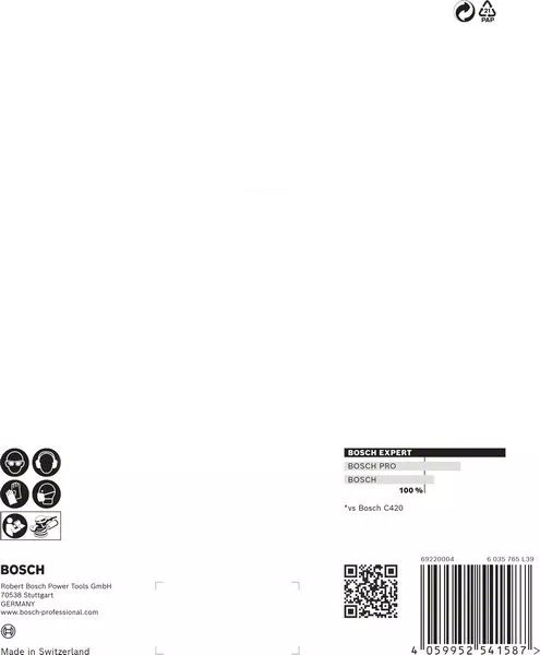 - Text s tvrzením o výkonnosti: Až 2× rychlejší než brusný papír Bosch C420