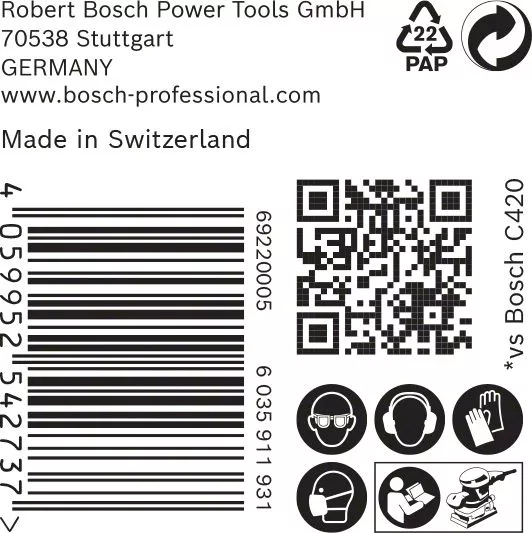 - Text s tvrzením o výkonnosti: Až 2× rychlejší než brusný papír Bosch C420