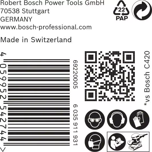 - Text s tvrzením o výkonnosti: Až 2× rychlejší než brusný papír Bosch C420