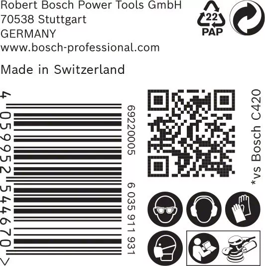 - Text s tvrzením o výkonnosti: Až 2× rychlejší než brusný papír Bosch C420