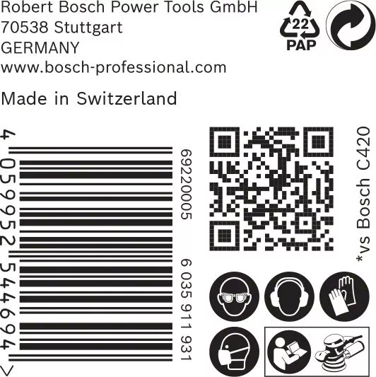 - Text s tvrzením o výkonnosti: Až 2× rychlejší než brusný papír Bosch C420