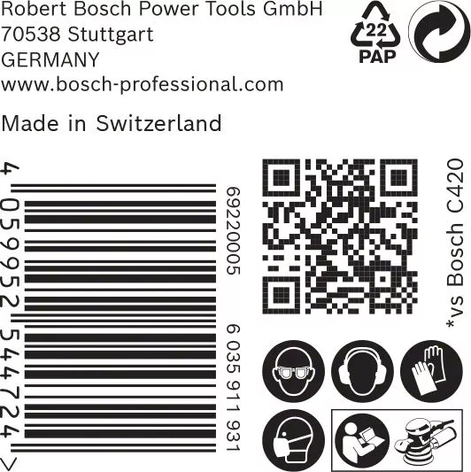- Text s tvrzením o výkonnosti: Až 2× rychlejší než brusný papír Bosch C420