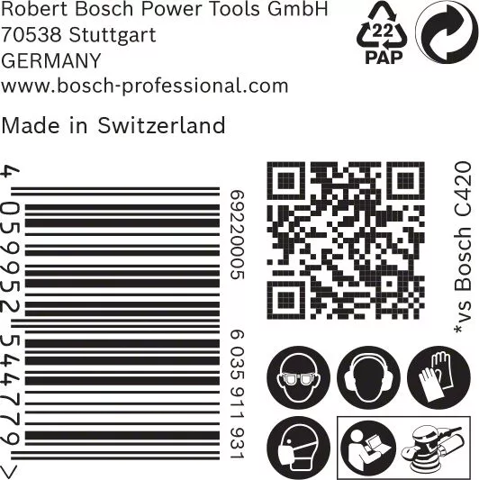 - Text s tvrzením o výkonnosti: Až 2× rychlejší než brusný papír Bosch C420