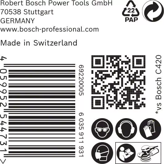 - Text s tvrzením o výkonnosti: Až 2× rychlejší než brusný papír Bosch C420