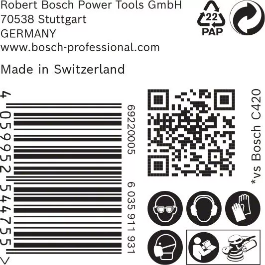 - Text s tvrzením o výkonnosti: Až 2× rychlejší než brusný papír Bosch C420
