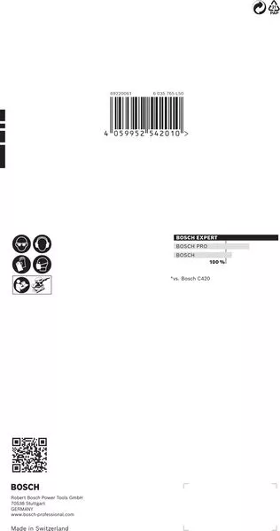 - Text s tvrzením o výkonnosti: Až 2× rychlejší než brusný papír Bosch C420