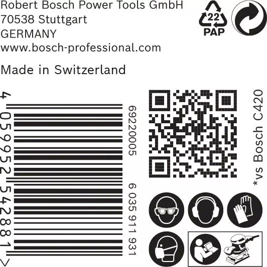 - Text s tvrzením o výkonnosti: Až 2× rychlejší než brusný papír Bosch C420