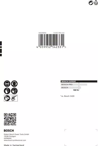 - Text s tvrzením o výkonnosti: Až 2× rychlejší než brusný papír Bosch C420
