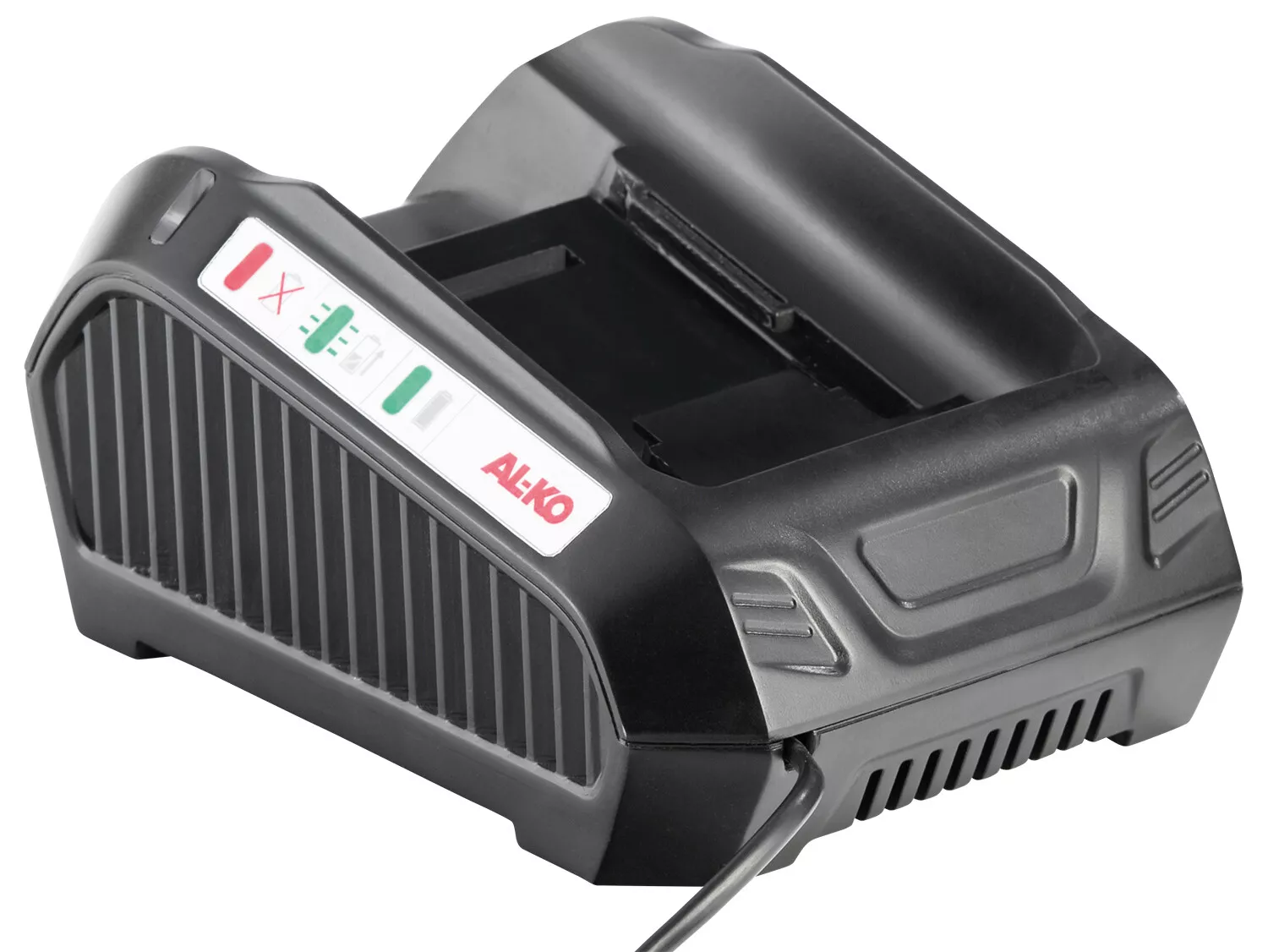 - Plně nabitá baterie vám signalizuje LED kontrolkou. Pokud používáte a nabíjíte několik baterií, můžete si poradit s neustálým používáním na zahradě. S nabíječkou od AL-KO plně nabijete své baterie AL-KO EnergyFlex maximálně za 90 minut.