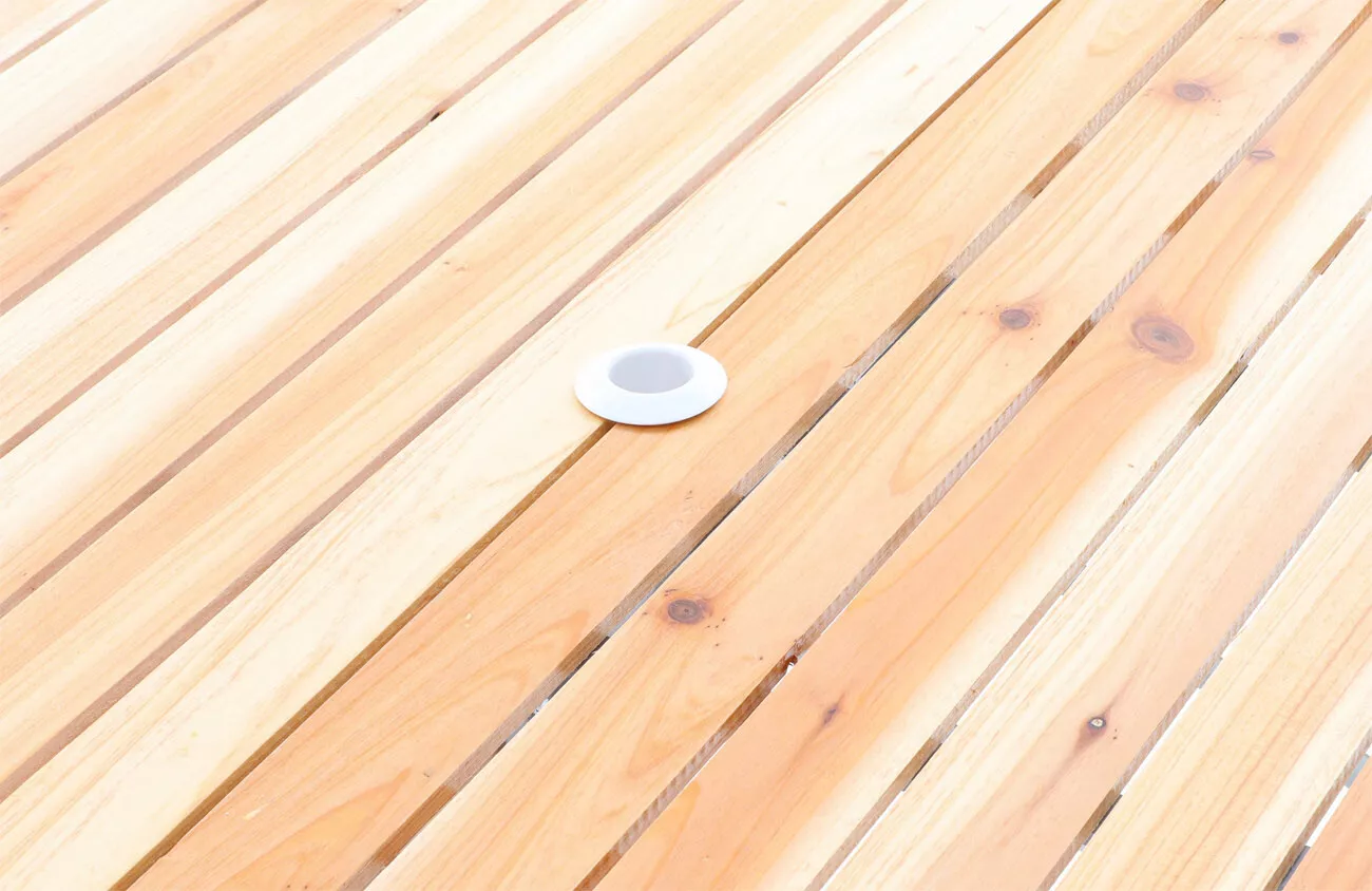 - Pro ještě pohodlnějši posezeni je stůl vybaven otvorem pro umistěni slunečniku.