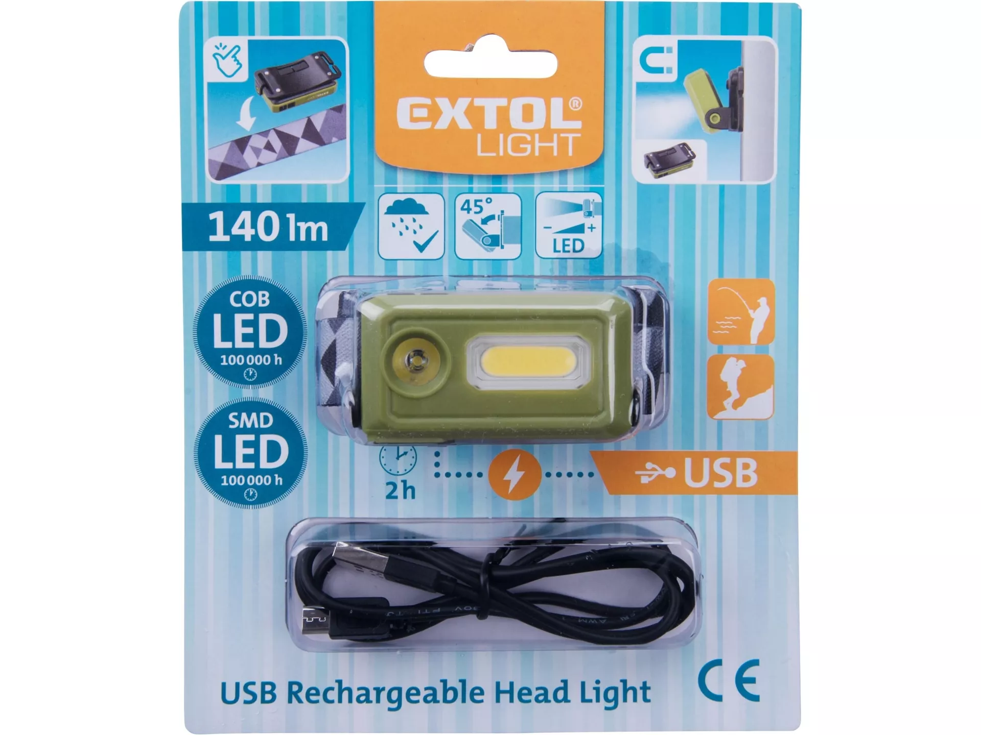 Čelovka 140lm, usb nabíjení, led+cob led EXTOL LIGHT 43184