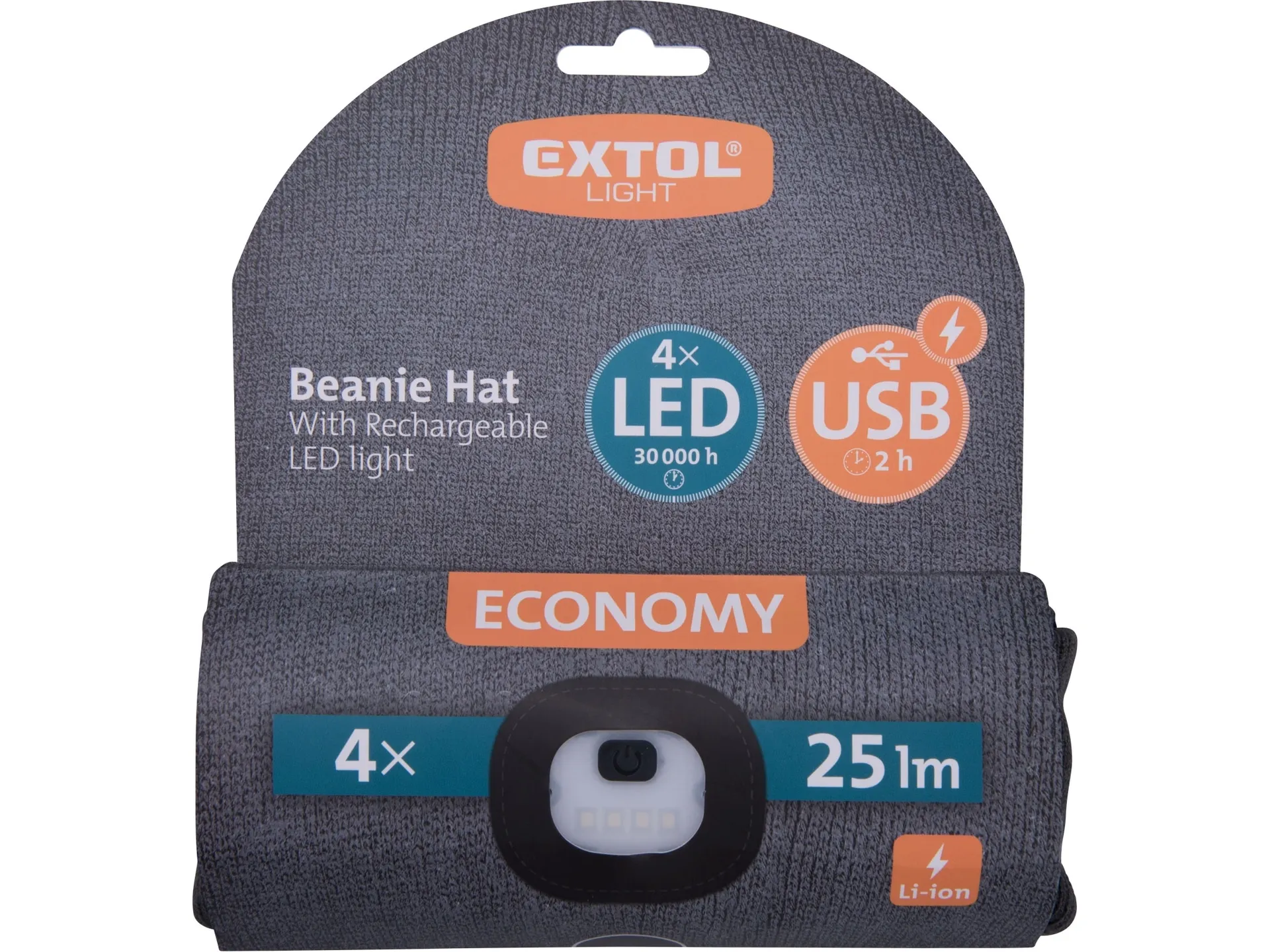 Čepice s čelovkou 4x25lm, usb nabíjení, tmavě šedá, economy, univerzální velikost, 73% acryl a 27% polyester EXTOL LIGHT 43452