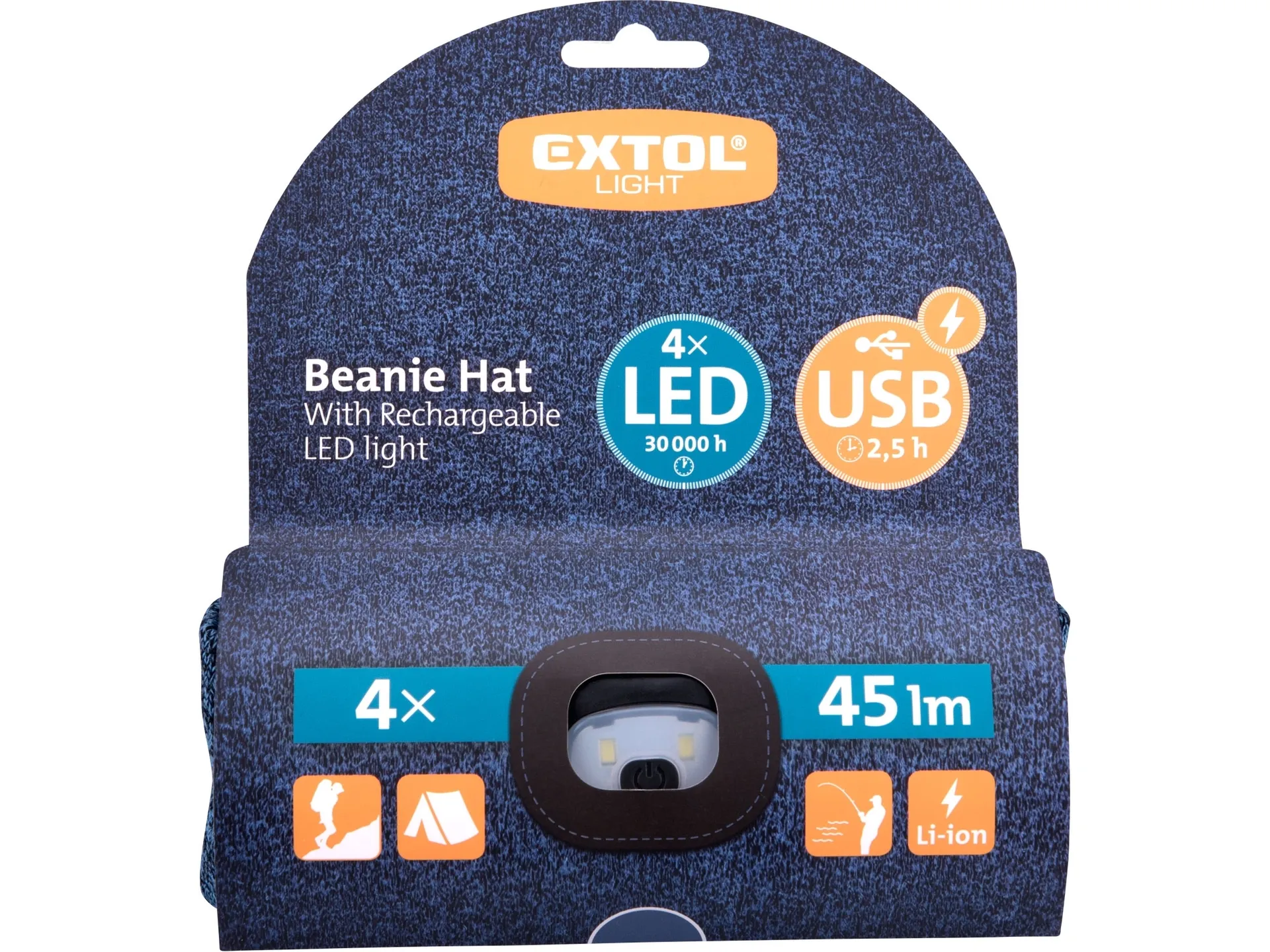 Čepice s čelovkou 4x45lm, usb nabíjení, modrá/černá, univerzální velikost, 100% acryl EXTOL LIGHT 43463