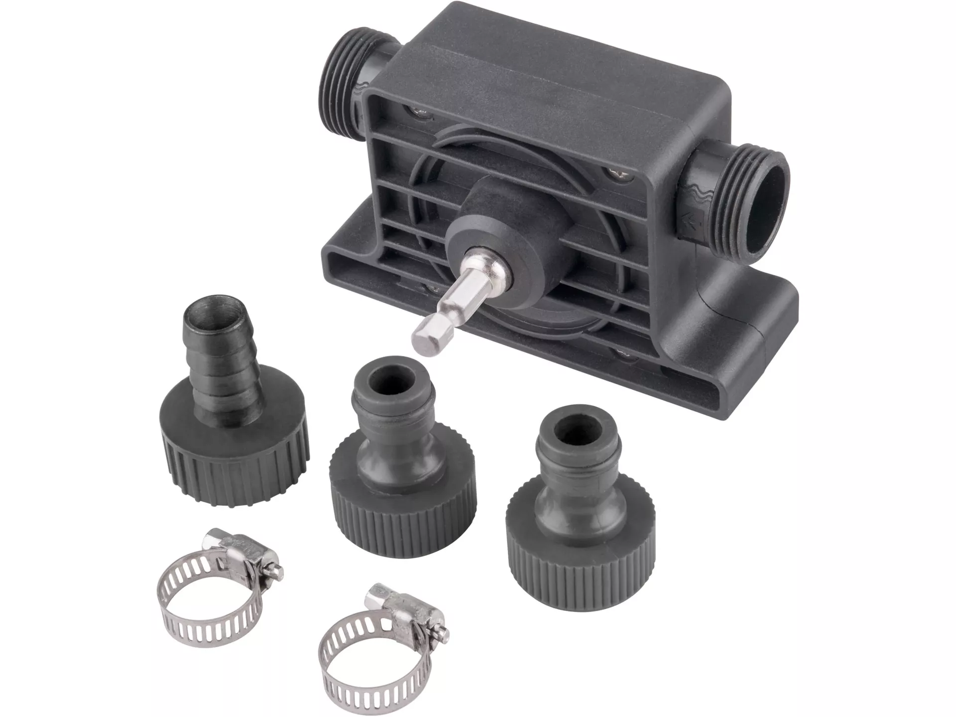 - Doplňující parametr: O obou hrdel 3/4", min. výkon vrtačky 350W, max. výtlačná výška: 15m, max. sací hloubka: 2m, max. otáčky: 3000ot/min., O hřídele 7mm