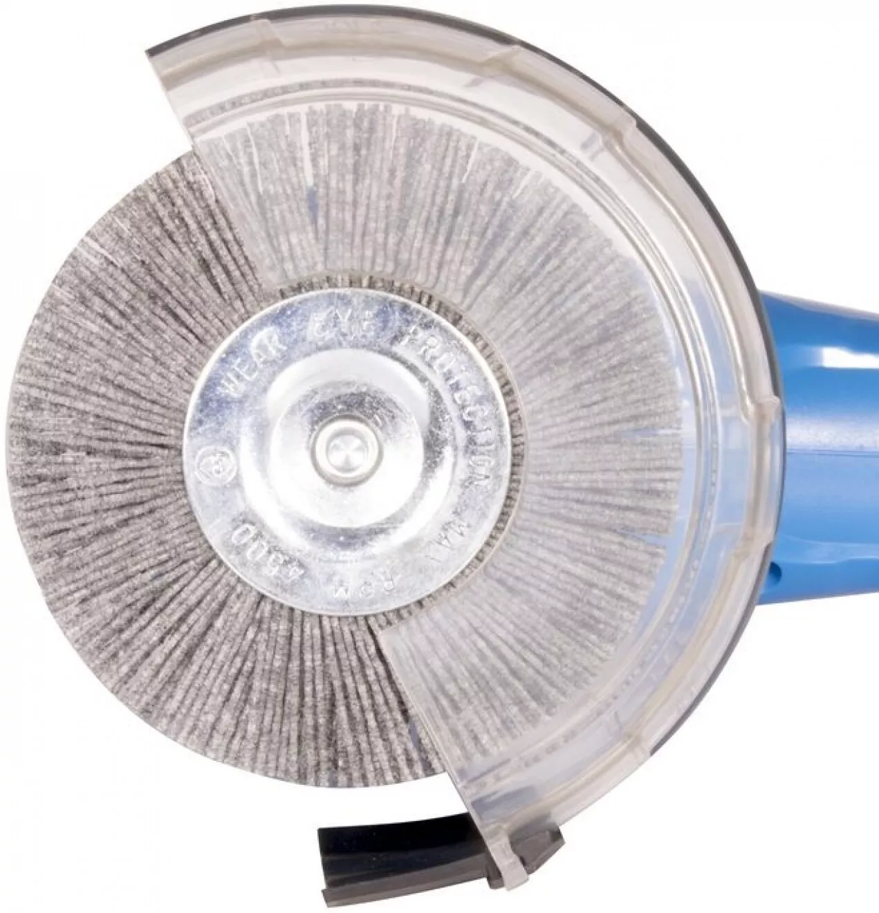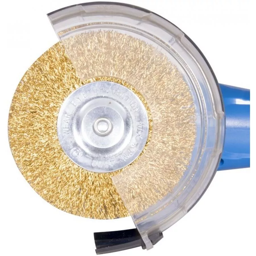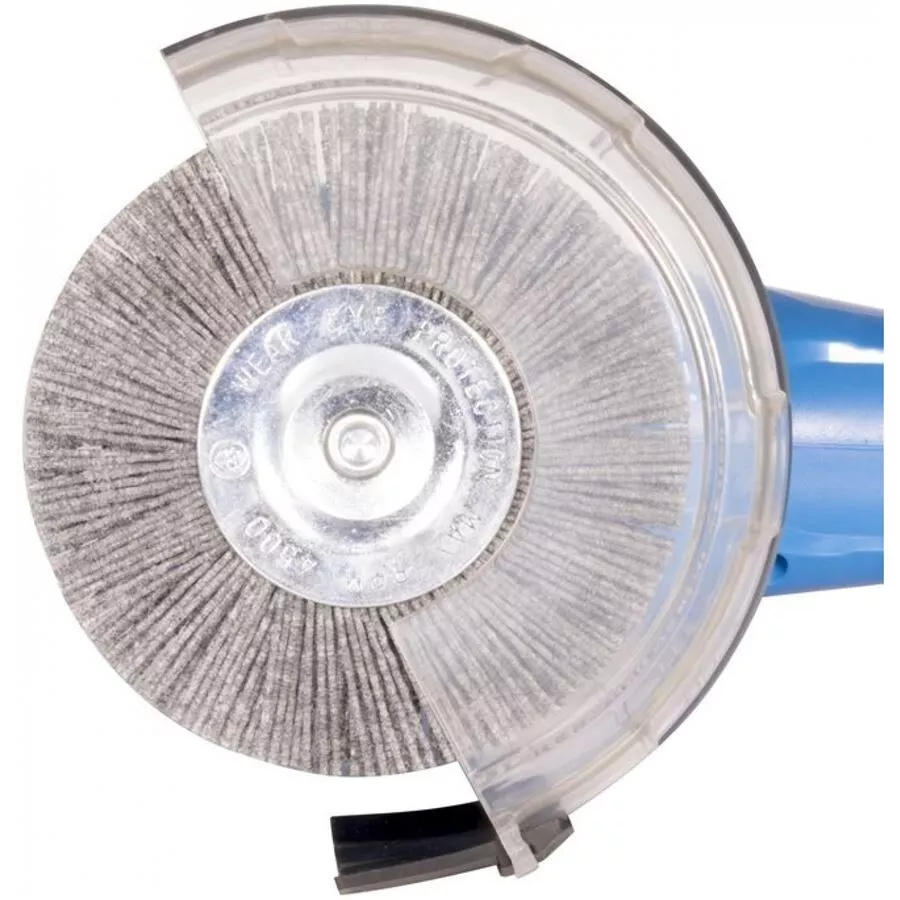 - 2 rotační kartáče (-> průměr: 110 mm, vlákno: polyamid/ocelový drát; s rychloupínacím čepem k výměnám kartáčů bez použití nářadí); opěrné kolečko pro přesné navedení kartáče do spáry