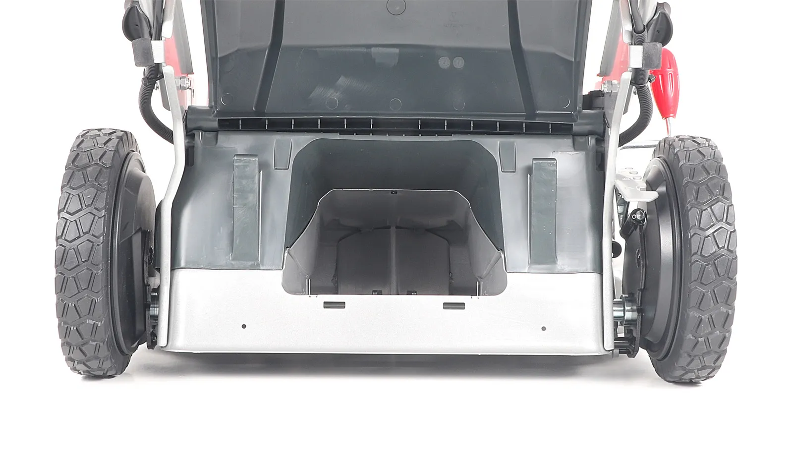 - Sběrný koš na trávu: Látkový koš s ochranou proti prachu